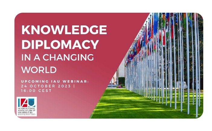 Paris, France: IAU Webinar Series: Knowledge Diplomacy in a Changing World // October 24th, 2023. In times of geopolitical, social and economic upheaval, dialogue and collaborative aspects of public diplomacy are crucial. In the past, science and cultural diplomacy were seen as an important contribution of universities. More recently, the focus has shifted to knowledge diplomacy, emphasising education, research and innovation. In this vein, the development of relationships with diverse groups outside of the university sector and the use of collective resources to address needs has become increasingly important.